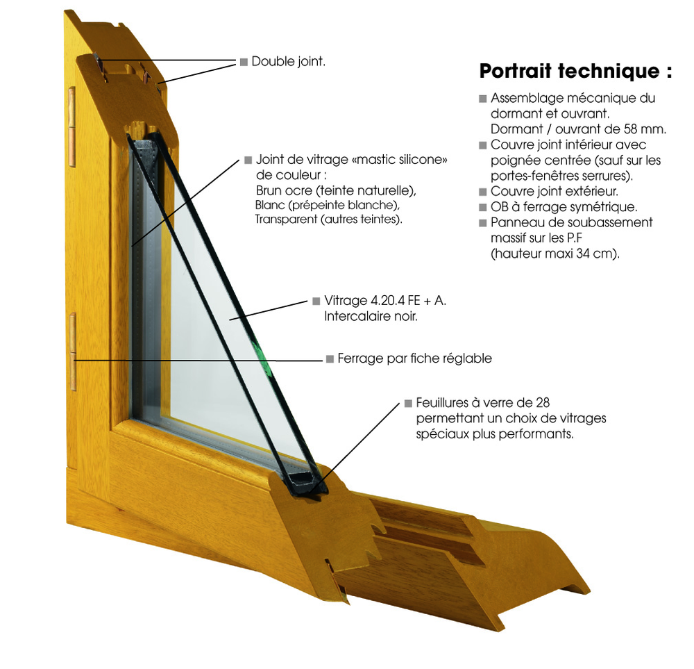 - Feuillures à verre permettant un choix de vitrages spéciaux plus performants