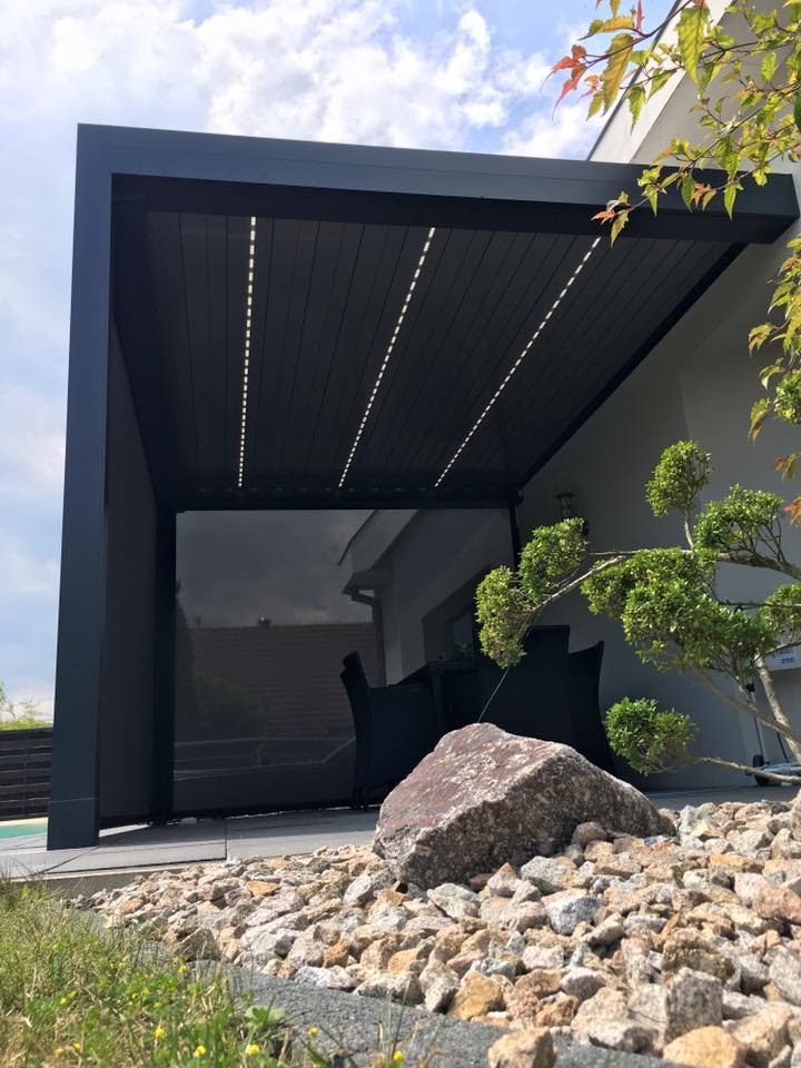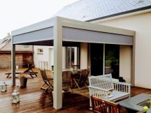 Pour un jardin moderne et chaleureux, les pergolas vont vous donner un style design et tendance par ses lignes épurées et ses choix de coloris. La pergola vous permet de profiter de votre terrasse en vous épargnant le vent, le soleil, la pluie fine... Vous n'aurez plus d'hésitation pour déjeuner sur votre terrasse. Par ailleurs, une des gamme vous propose des pergolas en lames orientables, pour fermer partiellement ou totalement le toit, ou avec une toile qui peut également s'allonger pour ombrager votre terrasse. Certaines ont également le store verticale pour vous protéger du soleil couchant. Dans le but de vous offrir un confort supplémentaire, vous avez la possibilité d'insérer au niveau de l'ossature de la pergola, des leds qui vous éclaireront d'une lumière douce.